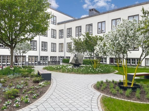 Seit Februar 2023 ist der erste der beiden Innenhöfe am Piloty-Gebäude der TU Darmstadt nach einer Umgestaltung fertiggestellt und lädt seither – aktuell besonders schön durch den frischen Frühlingsflor – zum Verweilen ein. Geprägt wird der neugestaltete Hof von neun Zierobstbäumen – ein Geschenk der TU Darmstadt an TU-Ehrensenator Carlo Giersch für seine jahrelange Unterstützung zum 85. Geburtstag im vergangenen Jahr. Stephan Rapp, Geschäftsführer der Stiftung Giersch, war stellvertretend und gemeinsam mit Dr. Manfred Efinger, ehemaliger Kanzler der TU Darmstadt, bei der Pflanzung der Bäume anwesend.