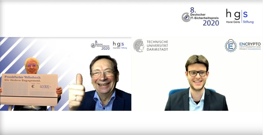 Die Sicherheitsforscher Professor Thomas Schneider und Christian Weinert, Fachgebiet ENCRYPTO am Fachbereich Informatik der TU Darmstadt, wurden mit dem zweiten Platz des Deutschen IT-Sicherheitspreis der Horst Görtz-Stiftung geehrt. Zusammen mit TU-Darmstadt-Absolvent Matthias Senker sowie Professor Christian Rechberger und Daniel Kales (beide TU Graz) erhielten sie den zweiten Preis für „ContactGuard“, die Entwicklung eines Privatsphäre-schützenden Verfahrens zur Kontaktermittlung in Messenger-Diensten. Die achte Verleihung des höchstdotierten Preises für IT-Sicherheit in Deutschland fand am 11. Februar digital im Rahmen der ersten Innovationskonferenz Cybersicherheit statt. Eine Expertenjury wählte aus 46 Einreichungen die besten markt-relevanten Innovationen in der IT-Sicherheit. Mit dem zweiten Platz ist ein Preisgeld von 60.000 Euro verbunden.