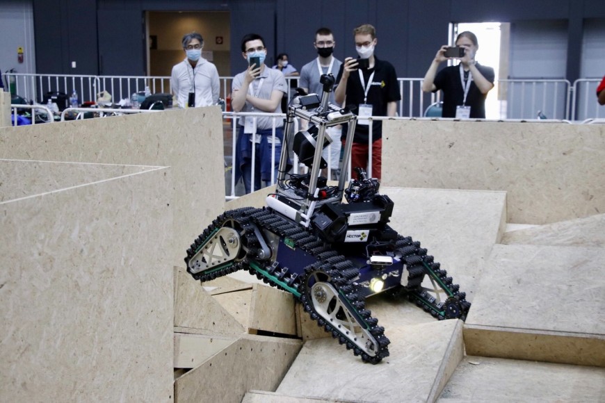 Beim internationalen Wettbewerb RoboCup vergleichen Forschungsteams die Fähigkeiten ihrer Roboter in vielfältigen und zu Vergleichszwecken standardisierten Teilaufgaben einer nachgestellten Krisensituation, wie z. B. das Szenario nach einem Erdbeben oder einem Tsunami. Die Roboter müssen dabei z.B. künstliche Opfer, die in der Rescue Arena verschüttet sind, so selbstständig wie möglich finden. Team Hector fokussiert auf autonome Assistenzfunktionen, die die Arbeit der Einsatzkräfte möglichst effektiv und sicher machen sollen. Dazu verwenden sie eine Vielzahl von Sensoren wie Videokameras, Infrarotsensoren, 3D-Kameras, Laserscanner, Ultraschallsensoren, Gassensoren und Mikrofone. Der RoboCup 2022 fand von 13. – 16. Juli 2022 in Bangkok, Thailand, statt.