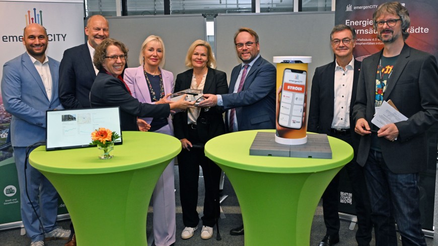 Eine dieser Innovationen ist die „Litfaßsäule 4.0“, eine digitale, energieautarke Warnkomponente für Litfaßsäulen, die Bewohnern während eines langanhaltenden Stromausfalls Informationen und Handlungsanweisungen anzeigt. „Damit informationstechnologische Lösungen auch bei stadtpolitischen Entscheidungen berücksichtigt werden können, arbeiten in emergenCITY Informatiker, Sozial- und Geisteswissenschaftler Hand in Hand“, erklärte Michèle Knodt, stellvertretende Koordinatorin bei emergenCITY und Professorin für Politikwissenschaft an der TU Darmstadt.