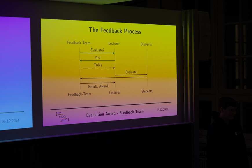 Höhepunkt und Abschluss bildeten wieder die Feedbackpreise der Fachschaft Informatik für die besten Lehrveranstaltungen im Sommersemester 2024: