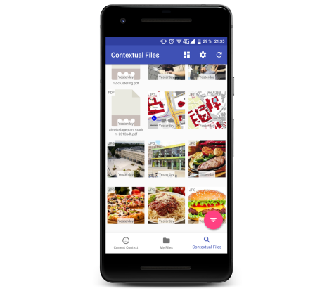 A context aggregator provides an interface to different kinds of contextual information. To gather contextual information from the mobile phones, we rely on three providers of such information: First, we make use of AWARE 2 , an open source framework for context instrumentation on Android phones. Second, the Google Places API provides a list of places that surround the user, their type and the likelihood of the users being located at those places. Third, the Android Connectivity API provides information about the network connectivity of the device.